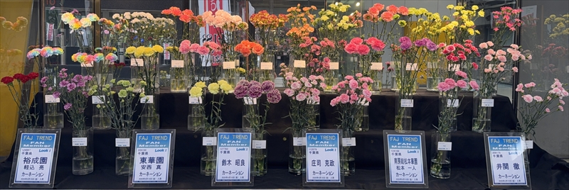 千葉の生産者6名からお送りいただいたおすすめカーネーション30品種の合同展示を行いました。